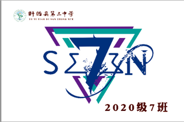 以班级“7” 为基本型,规则的平行线和交叉线构成骨骼,形成严肃统一又富有变化的几何形体,简洁活泼,积极向上。寓意着团结的七班,活力的七班,旗帜的七班,榜样的七班。