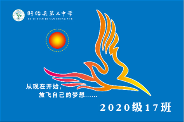 班旗由红日白点飞鸟和相关的文字组成,其中的红日喻指理想、目标、信念等,红日周围的白点就好比是班里的同学,紧紧围绕着理想目标,其中的飞鸟造型喻指羽翼未丰的凤雏,凤雏逐日就好比孩子们追逐理想目标一样,虽然他们羽翼还未丰,还没有展现出凤凰的优美身姿,但是只要付出不懈的努力,放飞梦想,就一定能够实现自己的理想。