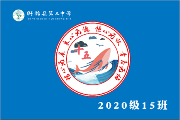 班旗中心由两个同心圆组成,寓意15班是团结友爱的班集体,圆环上的汉字是我们的口号及精神内涵。圆环内主体图案寓意我们要坚持梦想,在知识的海洋里不懈探索、乘风破浪、勇往直前。