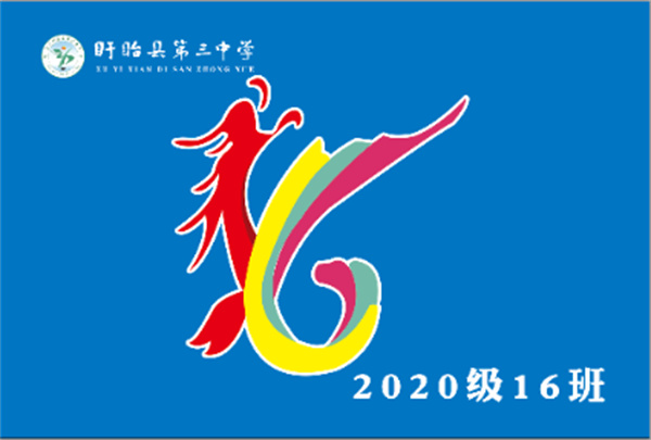 旗面颜色为蓝色,代表宽广的蓝天,也代表着浩瀚的知识海洋。整个图案是一个连体的16,代表着我们16班这个团结的班集体。从整体上看,这个图案是一个跳跃、奔跑的人,象征着我们16班蓬勃向上,勇往直前!“天高任鸟飞,海阔凭鱼跃”,我们16班全体师生,一定不负众望,努力学习,创造辉煌!
